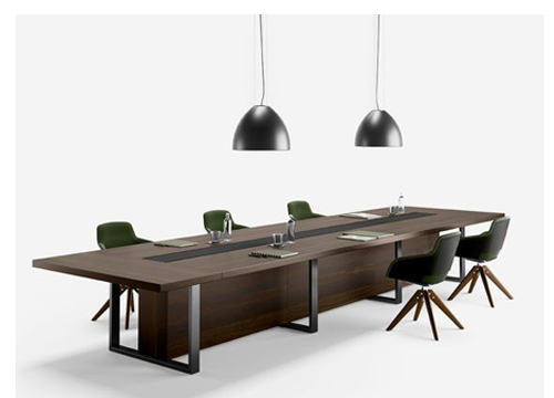 A conference table is a large table typically used in business or professional settings for meetings, discussions, presentations, and collaborative work. The table also features a robust frame, providing stability and support during discussions.
